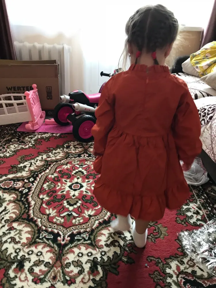 Очень понравилось платье) материал плотный, похоже на хлопок, внутри подкладка. Дочке 2,3 рост 92-93 (13-14 кг) отлично, даже ещё чуть с запасом)